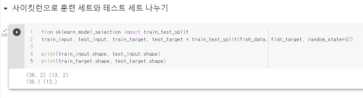 ### 사이킷런으로 훈련 세트와 테스트 세트 나누기