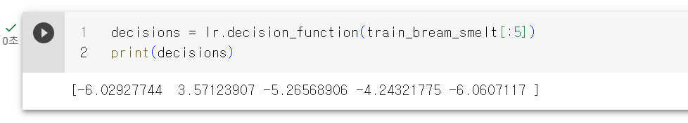 decisions = lr.decision_function(train_bream_smelt[:5])