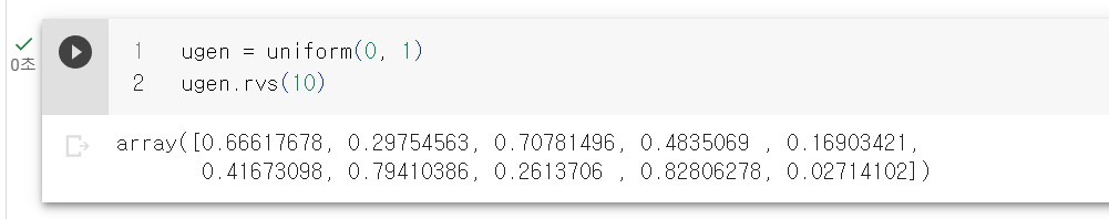 개수가 늘어나니 0에서 9까지의 숫자가 어느 정도 고르게 추출된 것을 볼 수 있다. uniform도 사용해보자.