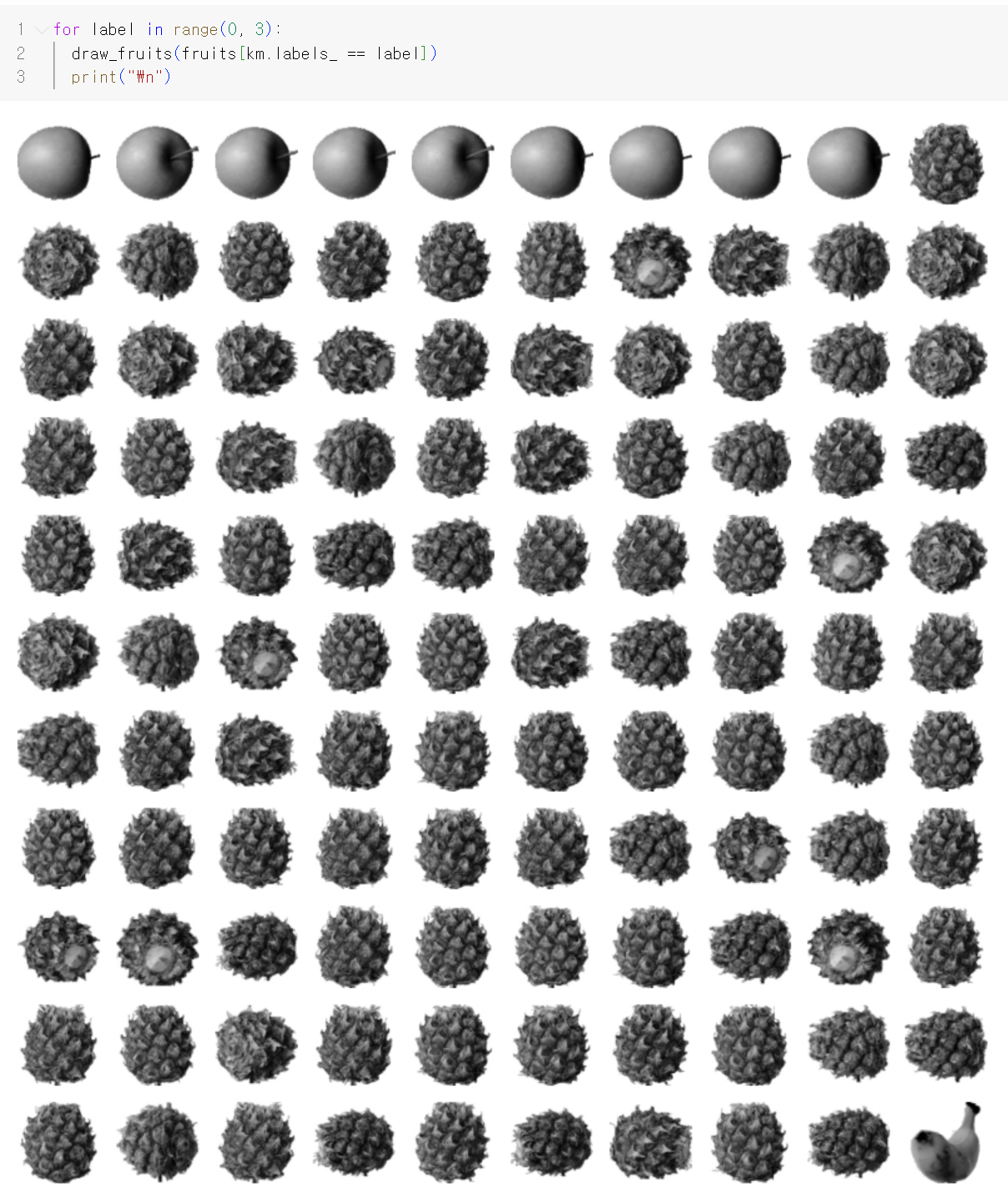 draw_fruits(fruits[km.labels_ == label])